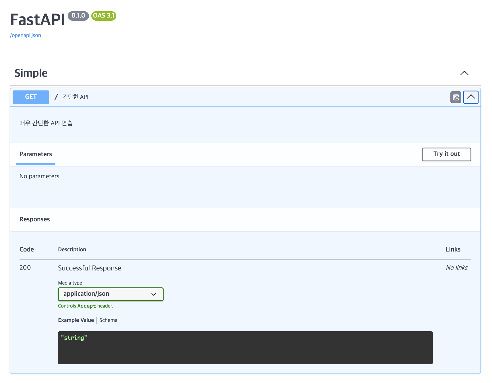 summary="간단한 API", # Swagger UI에서 보여질 API의 요약 설명