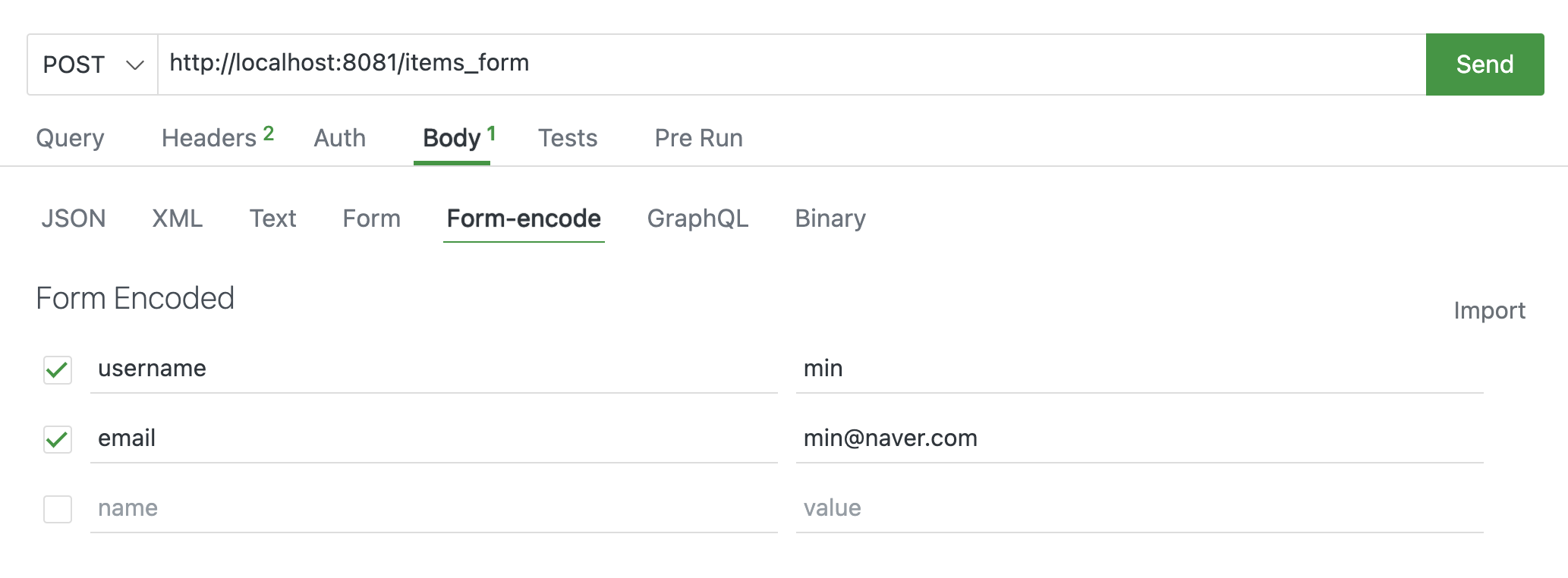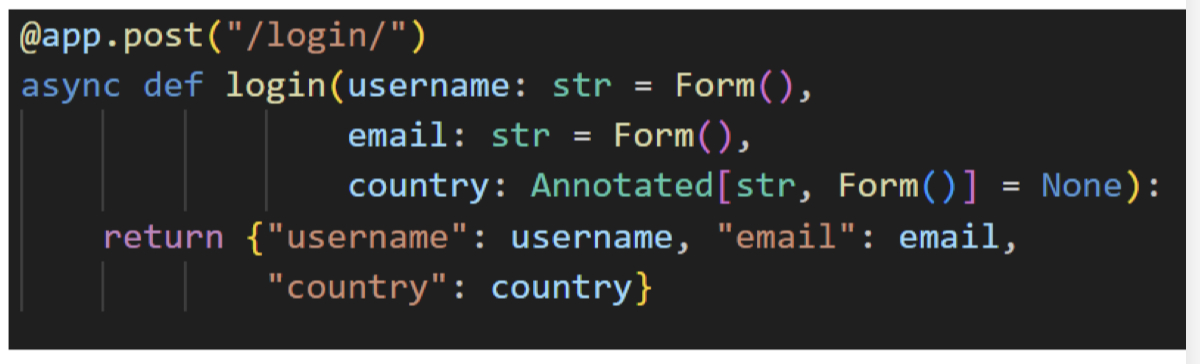 - FastAPI에서는 Content-type: application/x-www-form-urlencoded으로 Body에 작성된 Request를 의미