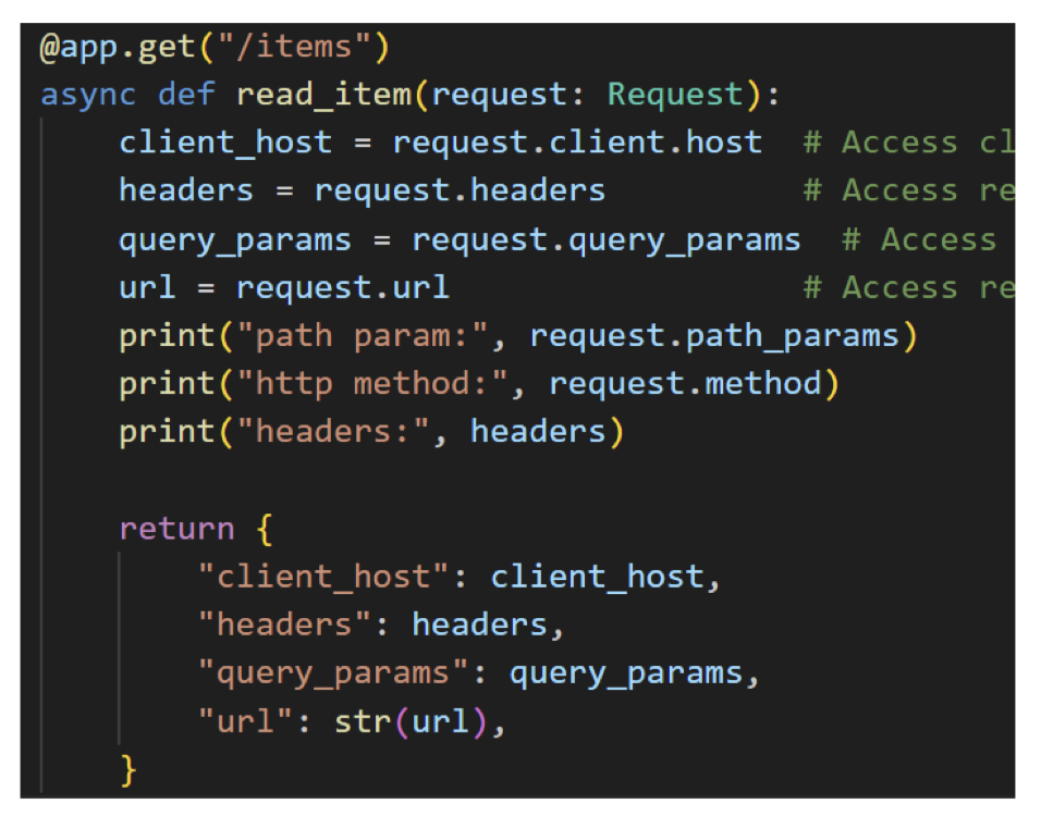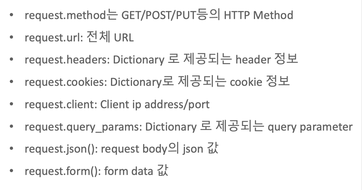FastAPI의 Request 객체는 HTTP Request에 대한 대부분의 정보를 다 가지고 있음.