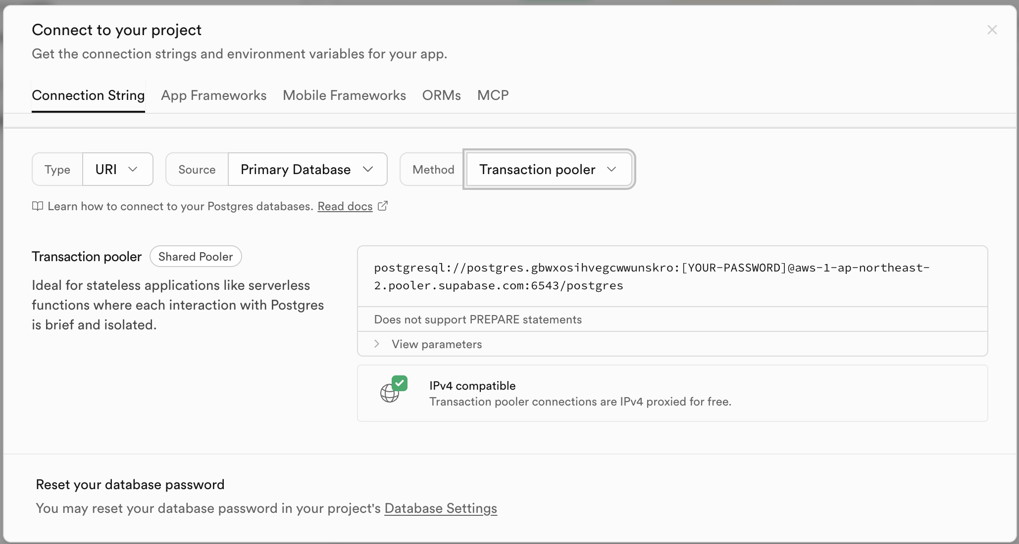SUPABASE_DB_URL=postgresql+asyncpg://postgres.gbwxosihvegcwwunskro:[YOUR-PASSWORD]@aws-1-ap-northeast-2.pooler.supabase.com:6543/postgres