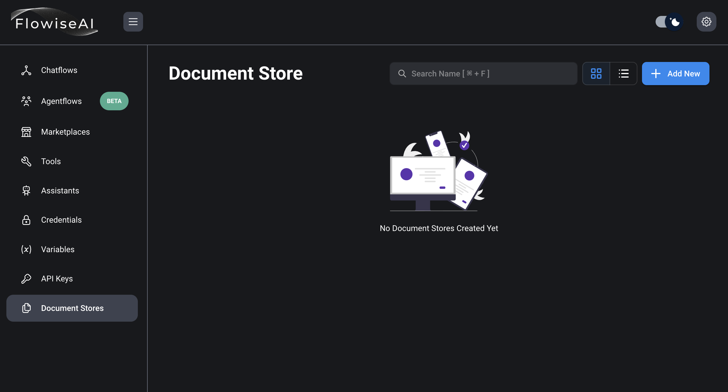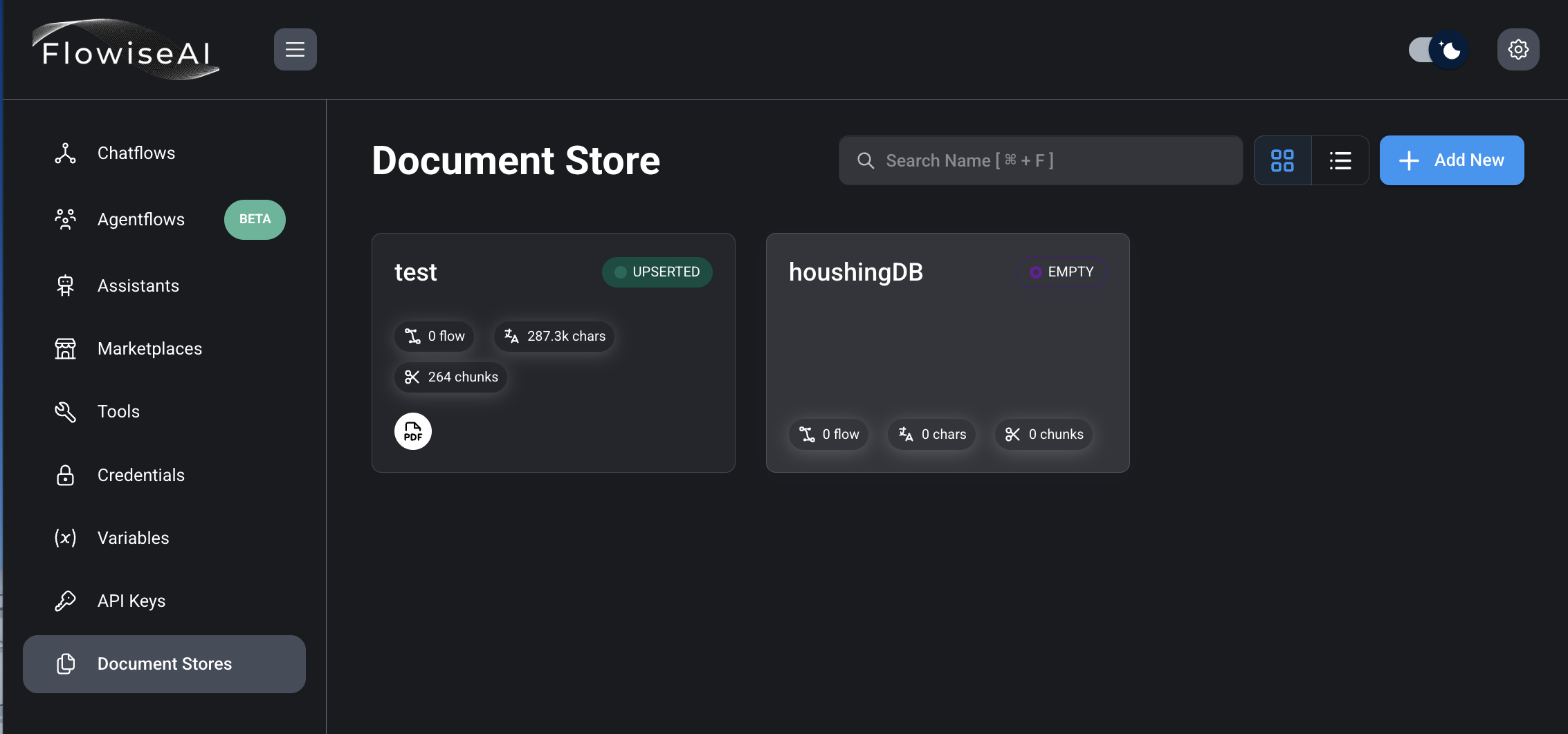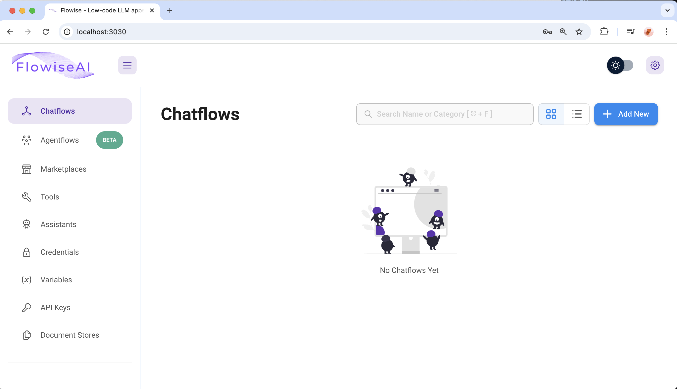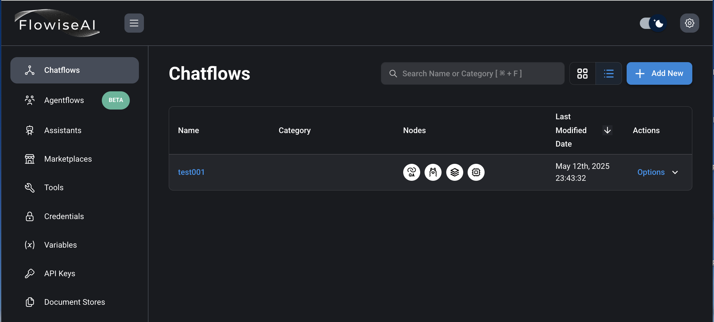 14) Chatflows 선택 후, Add New 버튼 클릭.