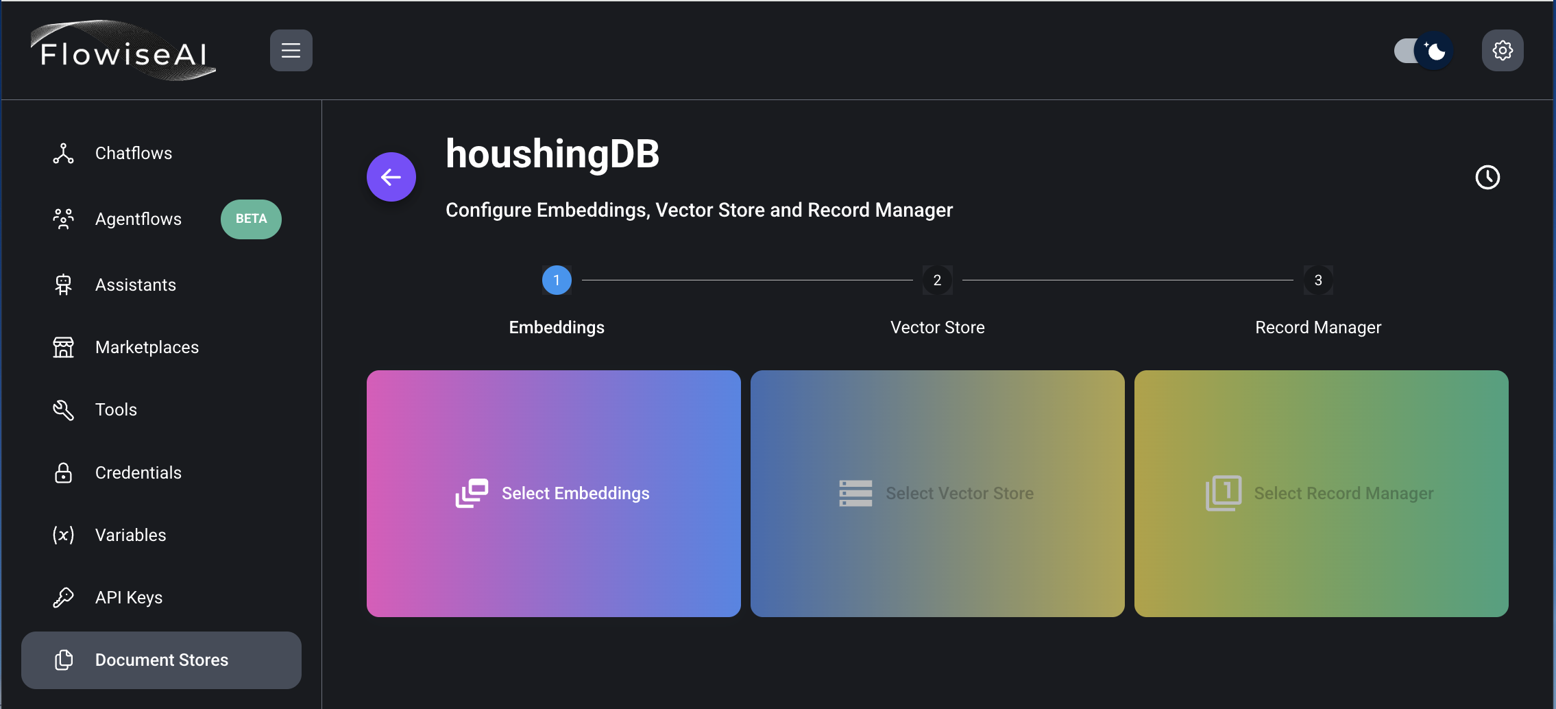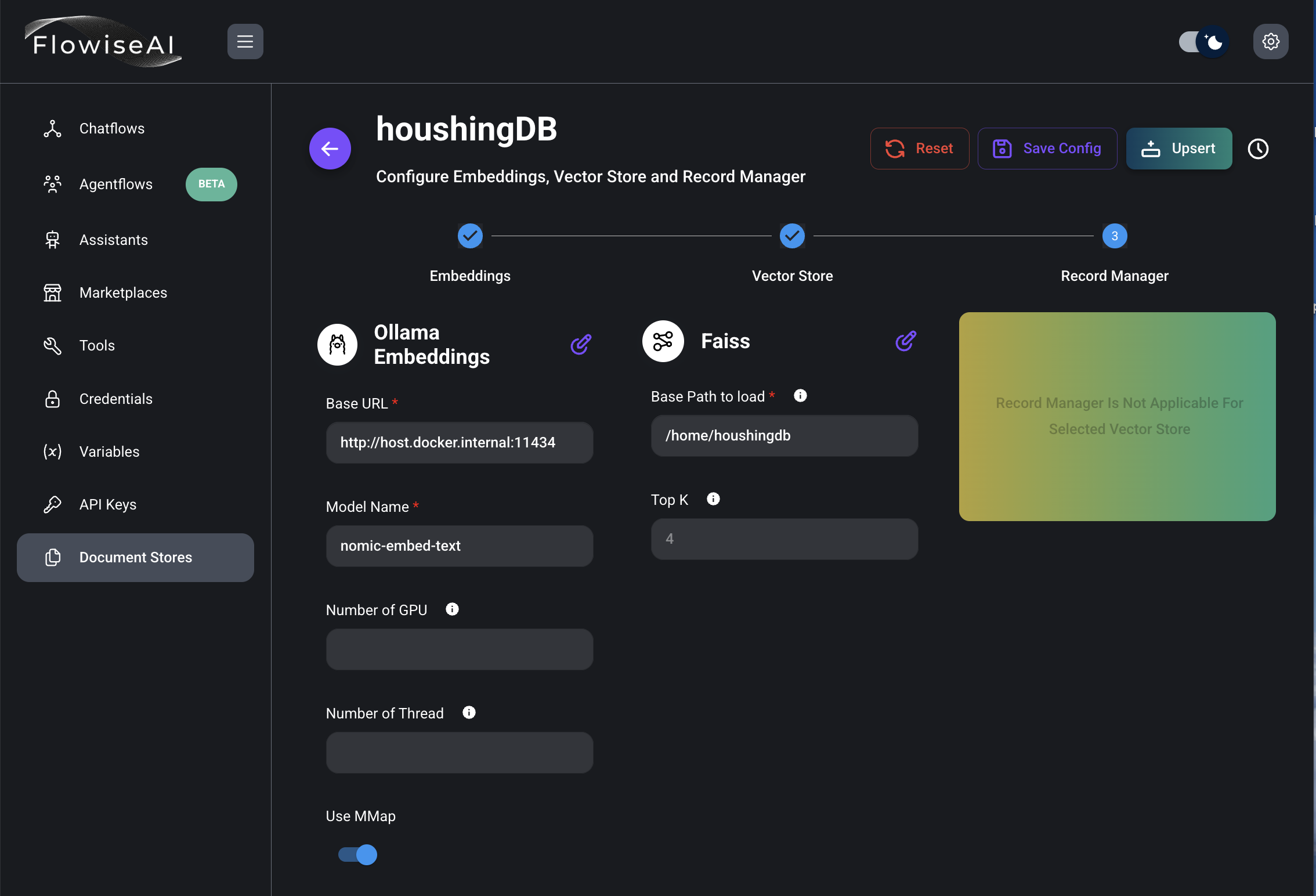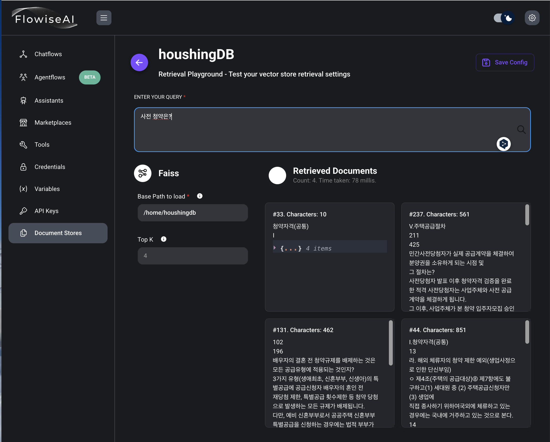 9) Select Embeddings, Vector Store는 Faiss 선택