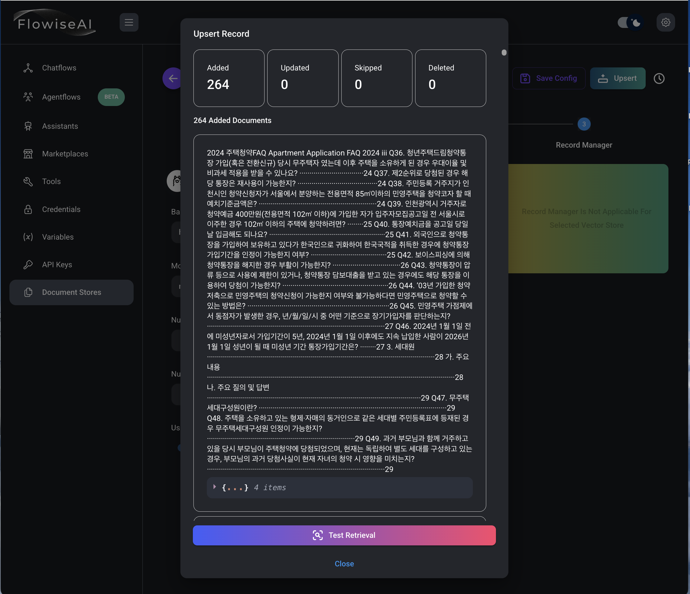 8) Options 클릭, Upsert Chunks 클릭