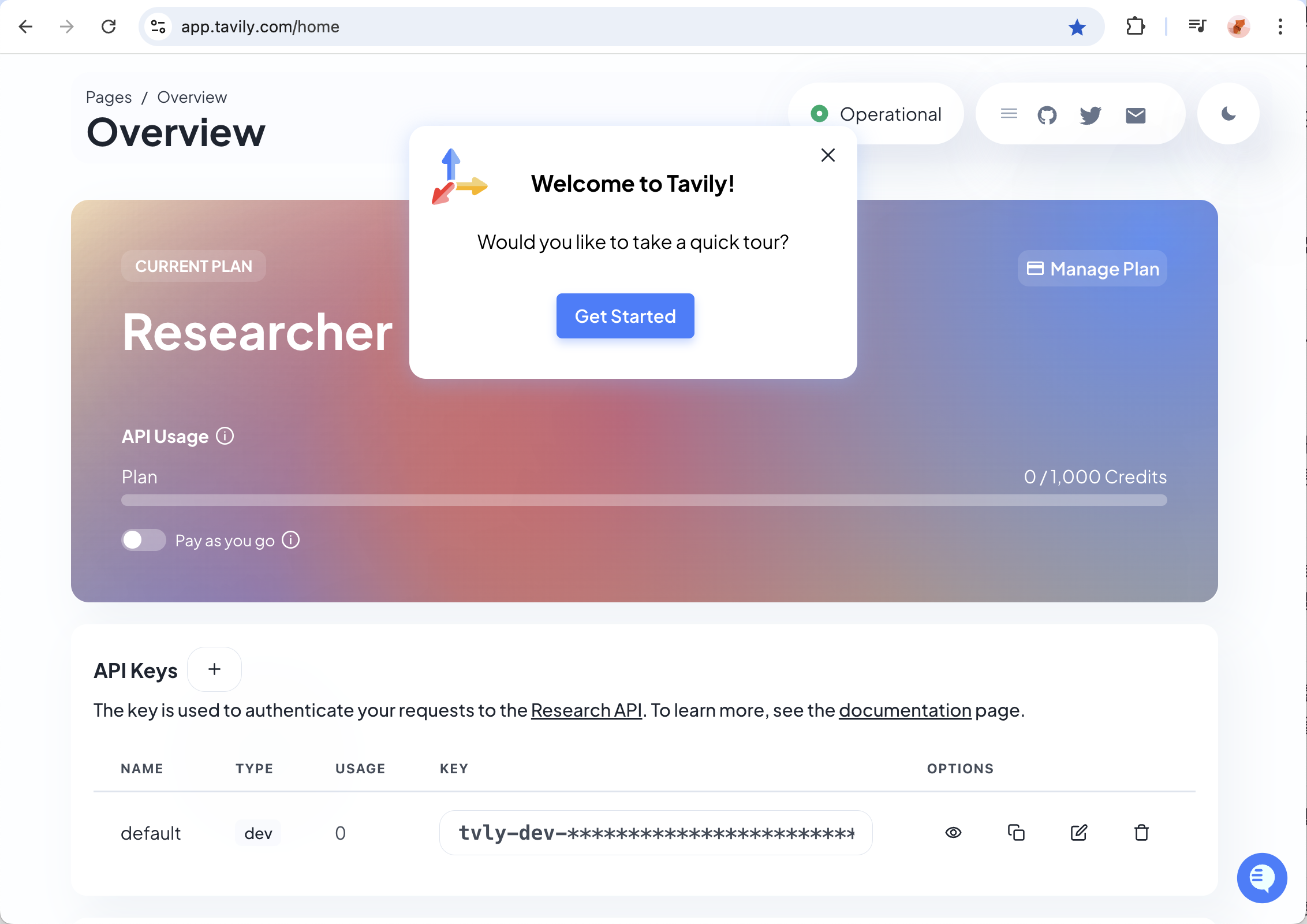 Tavily(타빌리) 회원가입 및 API Key